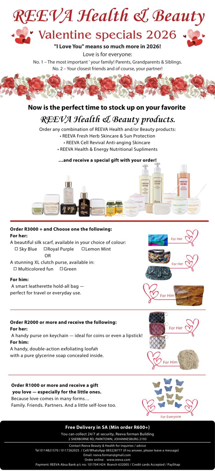 ENQUIRIES / ORDERS Tel 011 7262025 / Cell O83 2287777
